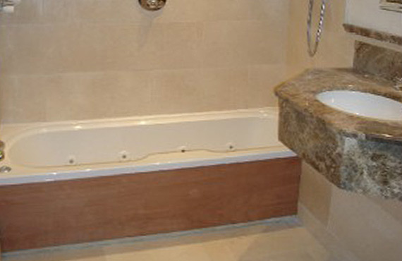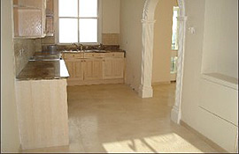 We supply for this villa, papiro honed limestone 450x450x10 mm and 305x610x10 mm tiles and Breccia Paradiso countertops cut like customer request in Folkestone, UK.